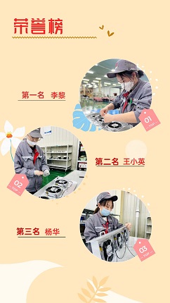 经过激烈的角逐,在裁判公平公正的评定下,最终评选出一、二、三名,分别是李黎、王小英、杨华。