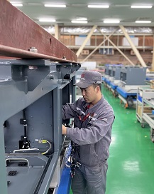 总组装生产线是给动车、地铁组装牵引变流器和辅助变流器的“动力流水组装线”。2022年,因受疫情和供料影响,总组装班组在人员不足、交货时间紧的情况下,面临压力带领班组混线推进海外孟买项目、西安地铁2号线增购列车牵引系统、大连地铁1、2号线牵引系统玻璃钢箱体的组装,顺利完成生产任务。