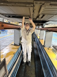 驻太原地铁售后服务人员吕江斌对电气设备进行检查,检修库内闷热的环境也不能阻挡对高品质服务的追求,一次次被汗水打湿的衣服,都是确保列车无故障运营的见证。