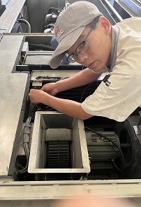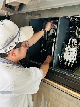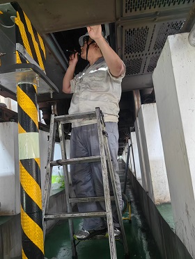 驻郑州东售后服务人员赵军朋不畏酷热,定期对空调进行点检,对室外风机状态进行确认,为旅客营造舒适出行体验贡献微薄之力。