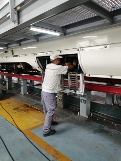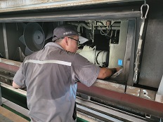 驻青岛售后服务人员李文龙对空调机组送风机变压器保护罩粘贴的温度贴温度值进行全数普查,并对空调机组进行点检工作,对换气装置进行震动测量,对空调机组、牵引变流器、换气装置发生的故障立即进行处置,确保问题不过夜,产品安全稳定运行。