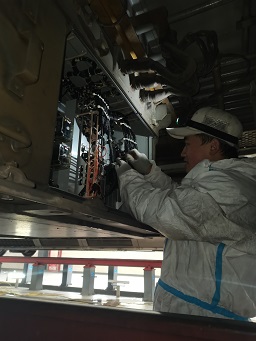 春节将至,驻上海南服务站的售后服务人员王金水对公司生产的空调装置、牵引变流器等产品进行日常检查,保障车辆正常上线运行,为旅客提供舒适的出行体验。